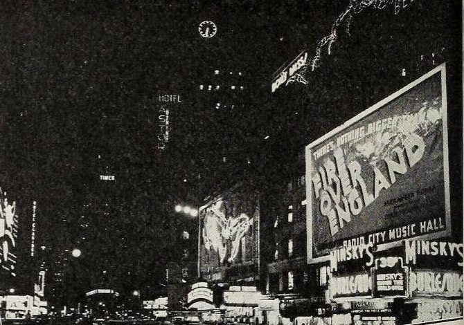 “Fire Over England” Billboard sign in Times Square, New York City |