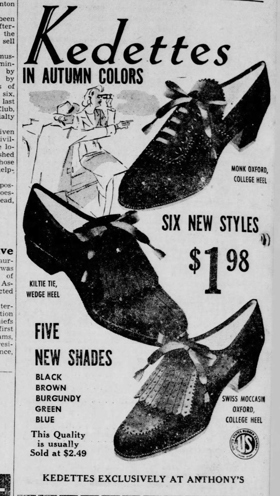 Above are a couple of shoe advertisemnts from 1937. I don’t know the particular shoe brand that Vivien wears in this golfing scene, but these shoes are somewhat similar to what she wears in the movie. I think it’s kind of fun to see the styles that were popular when the film was made.