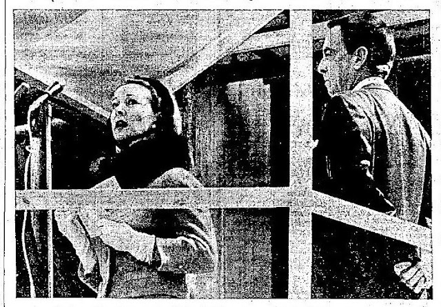 A side view of Vivien, at the theater, with Helpmann looking on:
