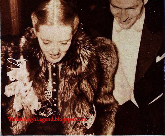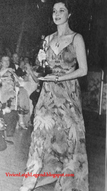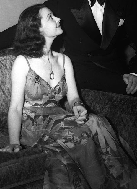 Vivien Leigh arrived for the ceremony with David Selznick, Laurence Olivier, Olivia de Havilland and Jock Whitney. Both Vivien and Olivia chose to wear ermine coats over their Oscar dresses: Vivien went with a floor length coat, while Olivia chose to wear a shorter, cropped version.
