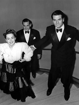 Vivien Leigh arrived for the ceremony with David Selznick, Laurence Olivier, Olivia de Havilland and Jock Whitney. Both Vivien and Olivia chose to wear ermine coats over their Oscar dresses: Vivien went with a floor length coat, while Olivia chose to wear a shorter, cropped version.