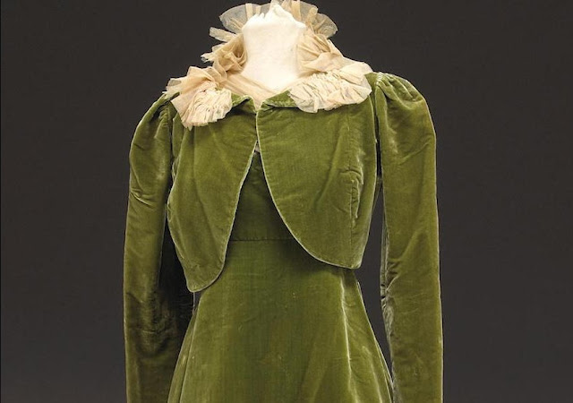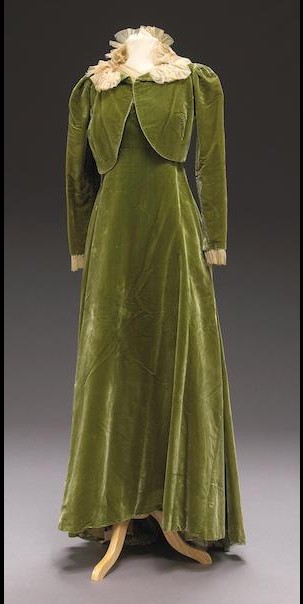 This next outfit was sold at auction a few years ago by Bonhams. The high bidder paid $2,585 USD for this lovely costume. The website’s description is simply Green velvet gown with chiffon bodice and bolero jacket.