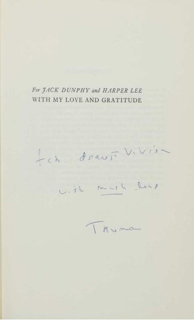 Truman Capote’s true crime novel, In Cold Blood, sold for £16,250. Capote had inscribed the book to Vivien with the following: for dearest Vivien, with much love, Truman.