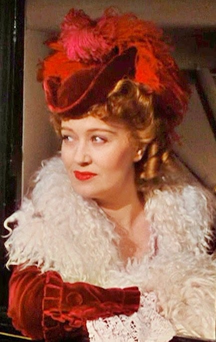 Olivia de Havilland as Melanie and Leslie Howard as Ashley greet each other at the train station. Ashley’s received a few days furlough for the Christmas Holidays. The sweater is seen again as Belle Watling, played by Ona Munson, meets Melanie outside the hospital.