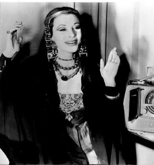 Vivien, still in stage make-up from her successful play as Cleopatra, listens to the radio as her name is announced as the winner of the Best Actress for “A Streetcar Named Desire.”