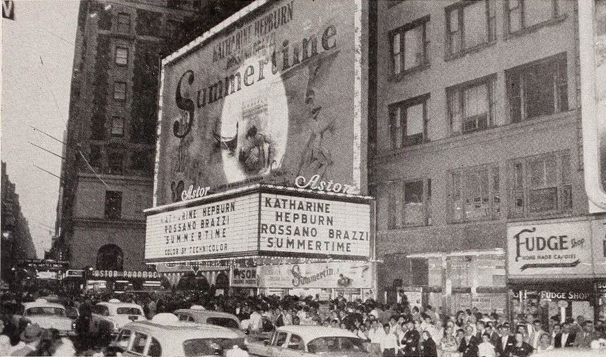 Summertime, also known as Summer Madness, premiered in June, 1955 with the first opening in Venice and the second opening in New York City. The NYC premiere was held at the Astor Theater with approximately 1,300 people in attendance. A large crowd gathered outside the theater to catch glimpses of the stars as they arrived.