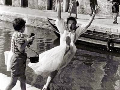 The best known scene in the film is when Hepburn falls into the canal. Her character is busy with her movie camera, filming Renato’s store, when she starts backing up to get a better shot and falls into the water. She’s horribly embarrassed when she comes out of the canal and calls for Mauro to return her to the Pensione. Mauro is a street urchin, whom Jane hired to guide her through the streets of Venice.